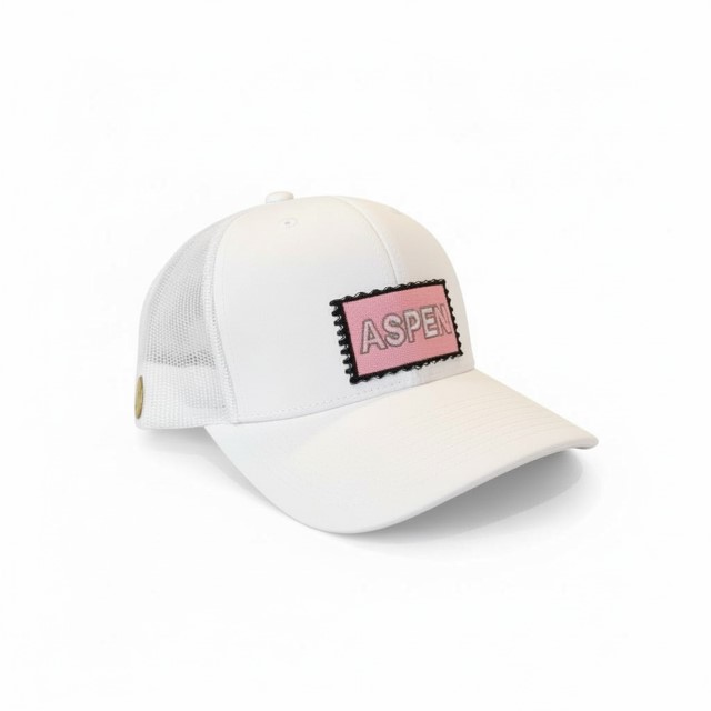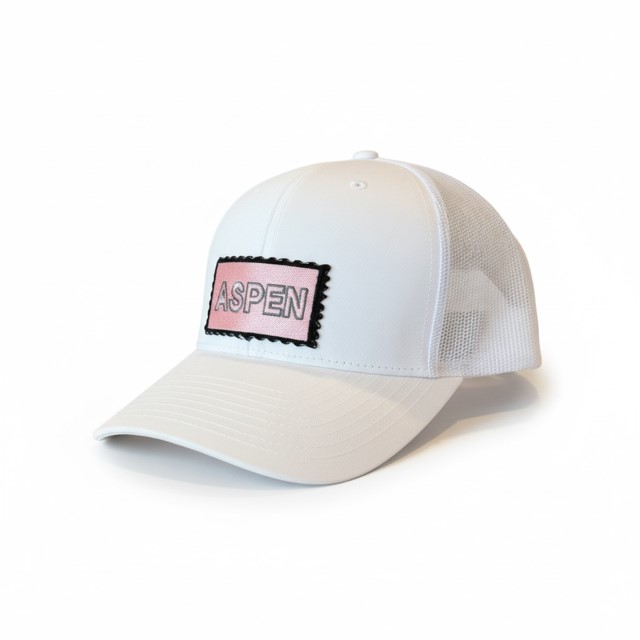 Clean, classic, and alpine-inspired, the Aspen Blush Stamp Trucker features a soft blush stamp-style patch on a crisp white base. A timeless nod to mountain weekends, ski-town charm, and après moments.