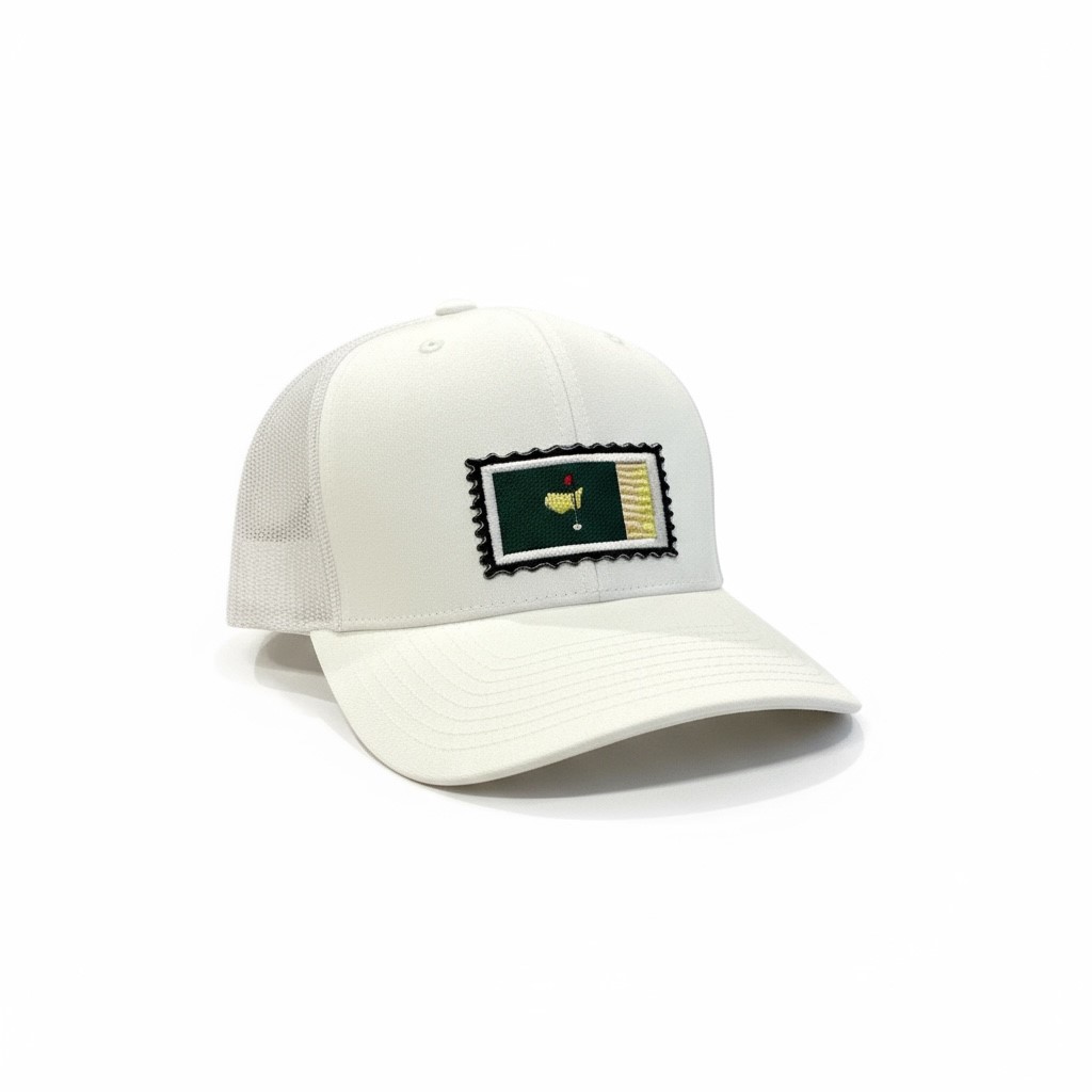 A timeless nod to golf’s most iconic finishing holes, The 18th Green hat captures the serenity and precision of the game. The patch design—crafted in La Vaux’s signature stamp-style—features a lush green fairway, red flag, and sand trap in vivid embroidery, symbolizing both challenge and triumph.